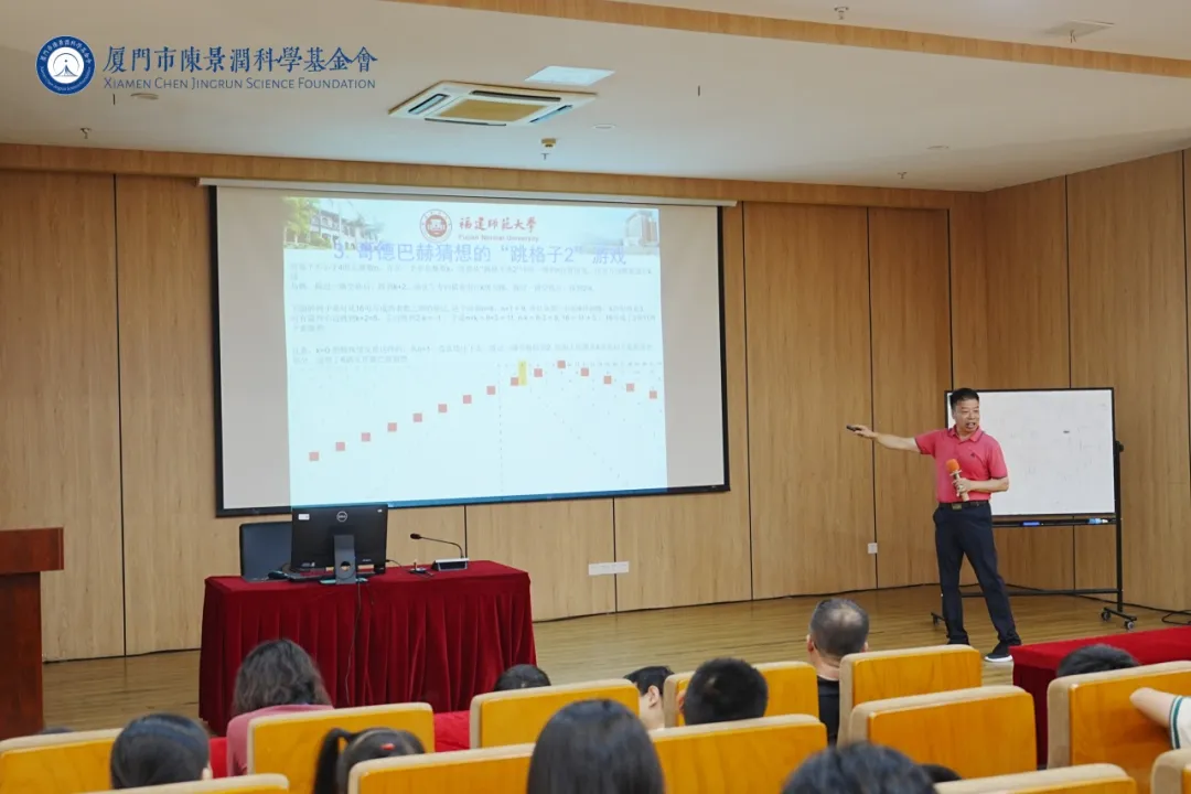 陈教授介绍了数论中的哥德巴赫猜想、孪生素数猜想和克拉茨猜想,以及与三个猜想有关的中小学数学题,其中着重介绍了著名的哥德巴赫猜想:任一大于 2 的偶数都可表示为两个素数之和(例如:10 = 3 + 7)。教授还特别提到,陈景润先生证明的 “1 + 2” 是目前该猜想研究的最佳成果。他鼓励孩子们在数学学习的道路上,要学会仔细观察规律,大胆猜想并提出假设,再通过逻辑推演进行验证。每一个数学猜想,都是人类智慧向未知领域发起的挑战。
