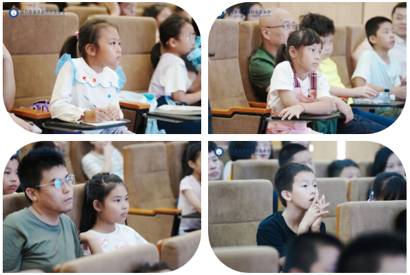 随后,林教授聚焦2025年央视春晚“巳巳如意”LOGO,现场模拟镜面翻转、旋转排列的过程,让轴对称、旋转对称等抽象数学概念变得可感可知。“LOGO翻转后‘巳’字轮廓完全重合,这正是数学与传统美学的巧妙碰撞!”他结合幽默生动的讲解,引导孩子们观察对称元素分布,不少学生主动拿起纸笔勾画,尝试用数学语言描述其中规律,真正践行了“用数学眼光看世界”的活动初衷。