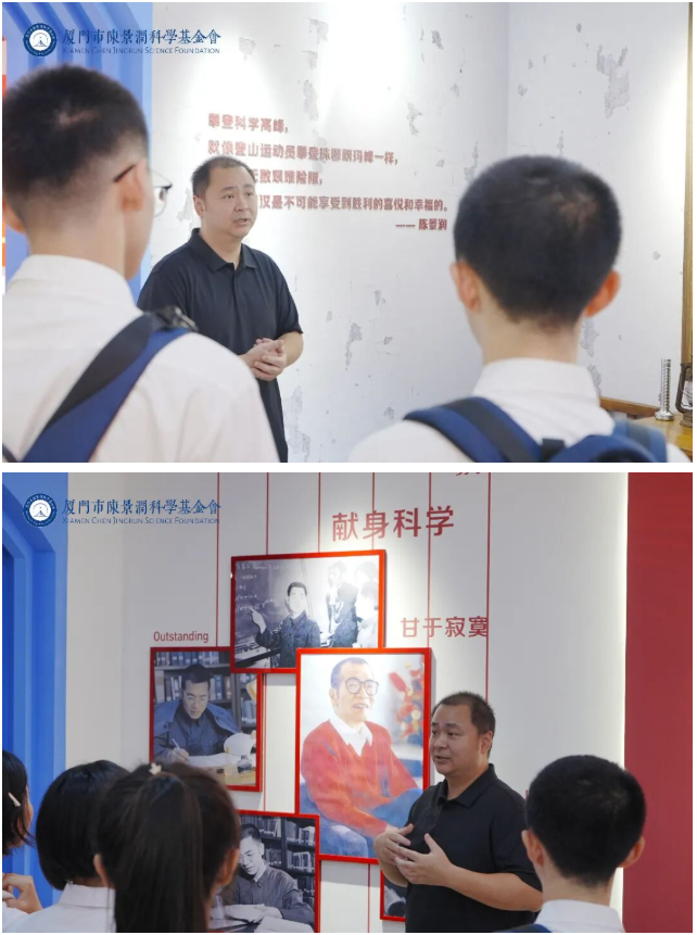 凤凰花染红厦大校道的八月末,30名厦门一中陈景润数学创新班学子踏着晨光走进陈景润科学精神教育基地,开启了一场跨越时空的精神对话。在陈景润之子、基金会理事长陈由伟先生的引领下,这场“科学精神传承之旅”在数学文化的浸润中徐徐展开。